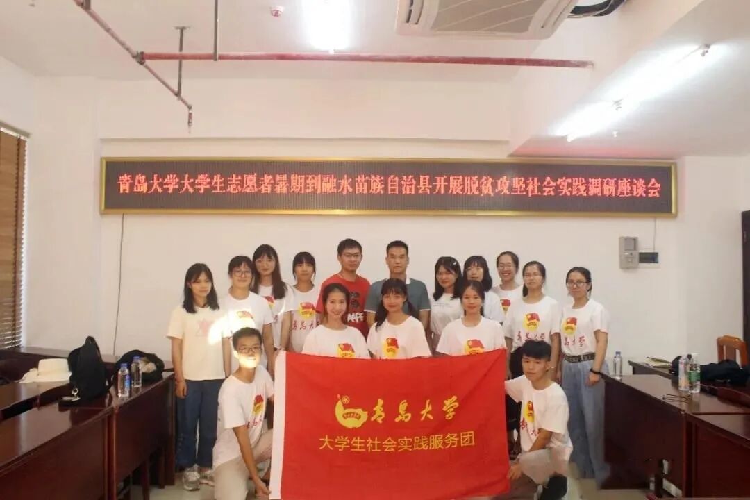2019年青岛大学大学生社会实践服务团合影(后排右三为韦新辰)