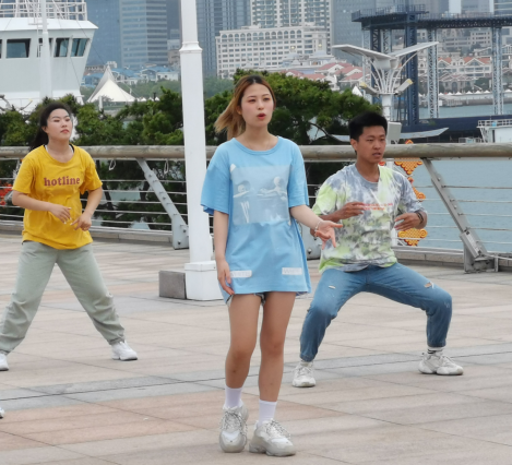 青岛YOUNG RICH舞蹈工作室的舞者,是临时受邀组团参与拍摄的。五人街舞团三个女生,两个大男孩。由于大家擅长的舞蹈风格不尽相同,所以编舞的过程没有想像中那么顺利。团队的小伙伴们在每天工作之余抽时间聚集到一起熬夜排练。