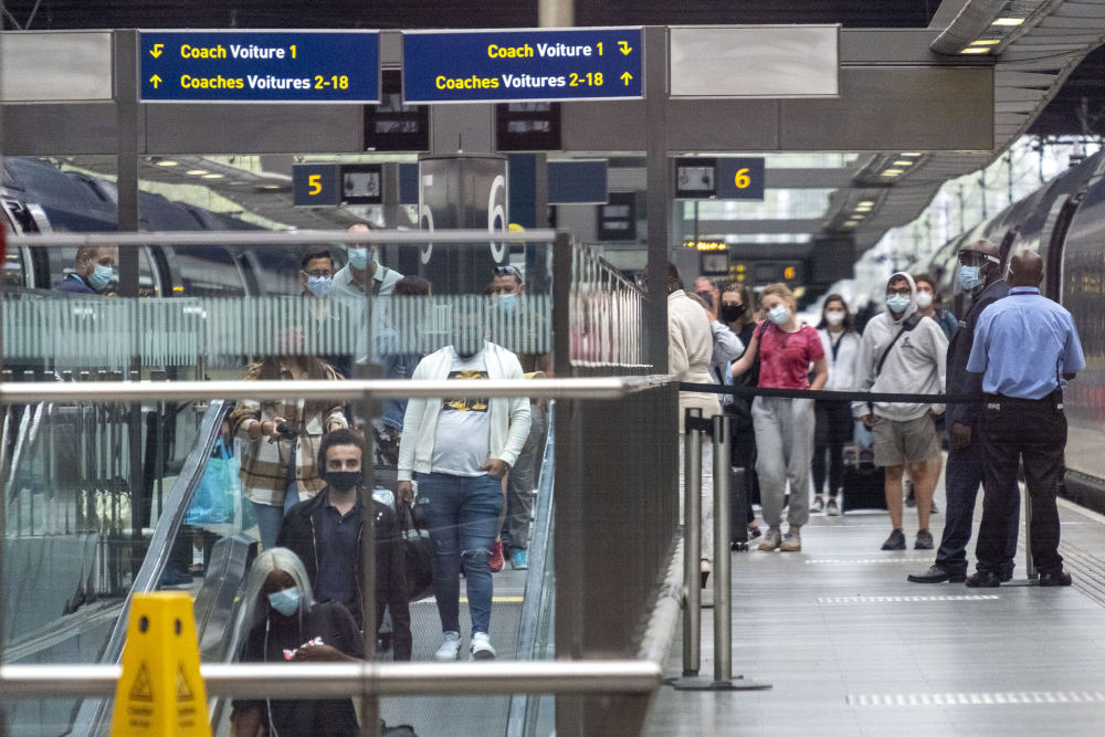 8月15日,乘客从巴黎乘坐“欧洲之星”列车抵达英国伦敦的圣潘克拉斯国际火车站。(新华社发)