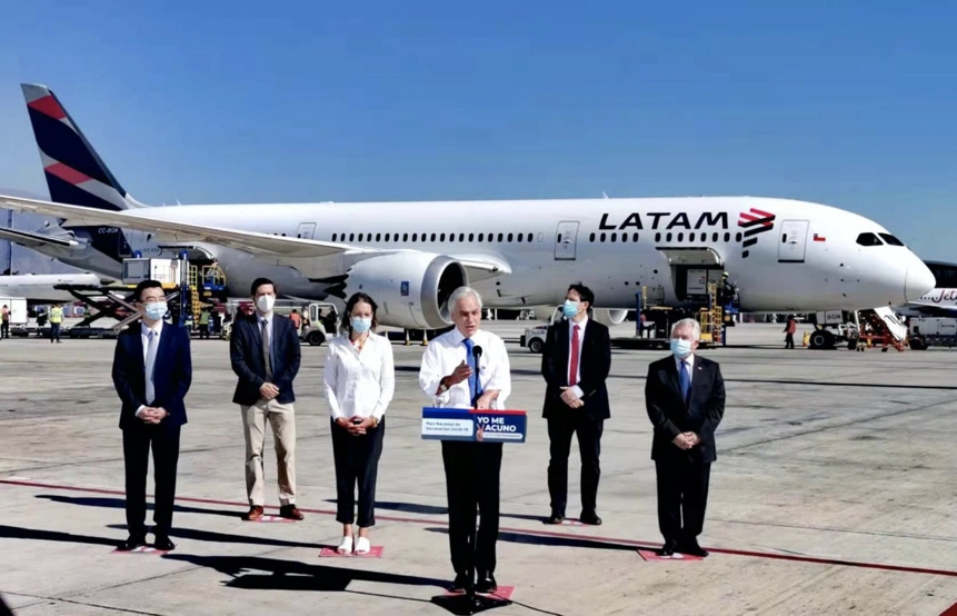智利总统皮涅拉赴机场迎接中国疫苗。