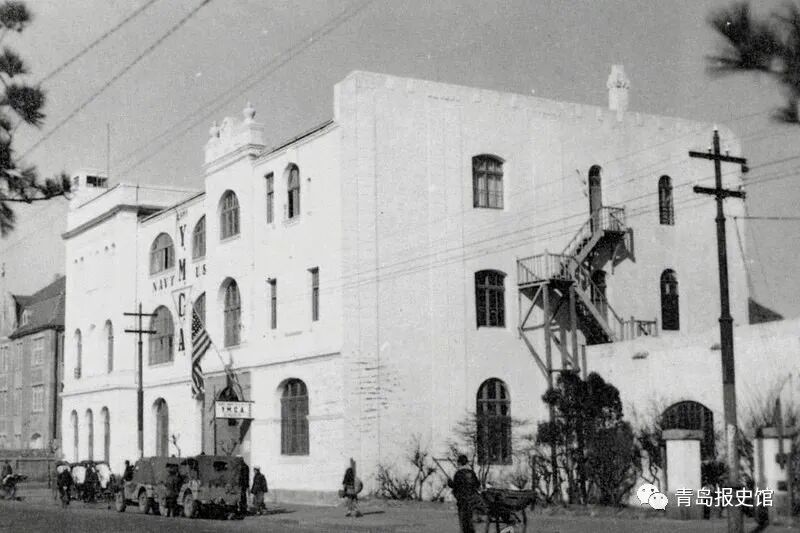 尽管终至1922年岁末北洋政府取回了青岛的主权,但依然无法收回这些经营性机构。直至1945年日本战败投降后,该楼外墙的英文标识才被刷新,改为Y.M.C.A,NAVY.U.S.A,作为了美国海军基督教青年会(Young Men's Christian Association)的驻地。在北美影响甚巨的基督教青年会是神学世俗化的践行者,它在倡导培养青年完美人格的同时传播社会福音,它的机构形式也有着极浓重的世俗化色彩。故而这座青岛老建筑一度成了设施齐全、能够提供多种服务的海军后勤接待基地。有回忆说,餐厅的部分不仅开辟出了跳舞厅,还曾搭建过一个不大的拳击台。美国水兵在这里跳舞、“捣毛克斯(BOX)”,后来这项洋式拳击运动也在青岛一度风靡。