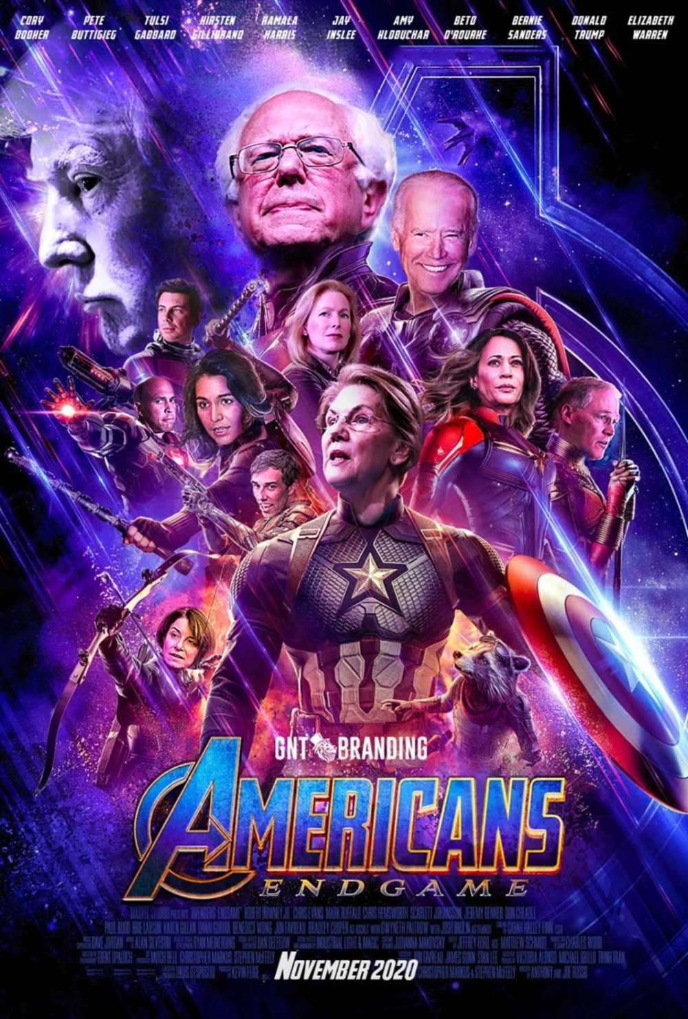民主党党内预选阶段,一张模仿“复仇者联盟”影片的海报,当时拜登的“咖位”并不突出。