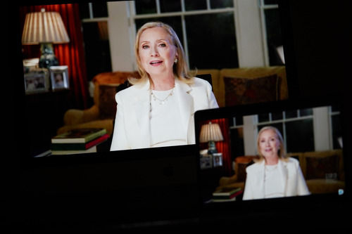 8月19日,美国前国务卿希拉里在线出席美国民主党全国代表大会 。新华社记者刘杰摄