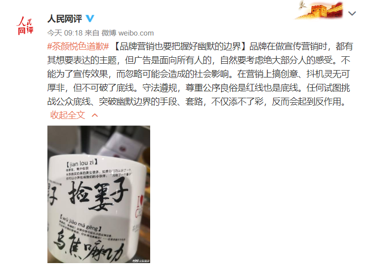 人民网评茶颜悦色广告事件:品牌营销也要把握好幽默的边界