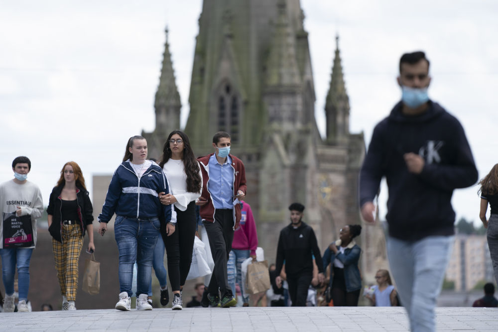 8月24日,部分市民戴口罩在英国伯明翰市中心行走。(新华社发,乔恩·休珀摄)