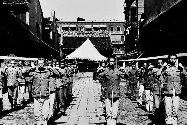 三、晨5时升半旗,6时降旗。12时1刻,全体集合默念3分钟,并作以下问答口号。问:今天什么日子?答:八一一。问:你们忘记吗?答:死不忘记。