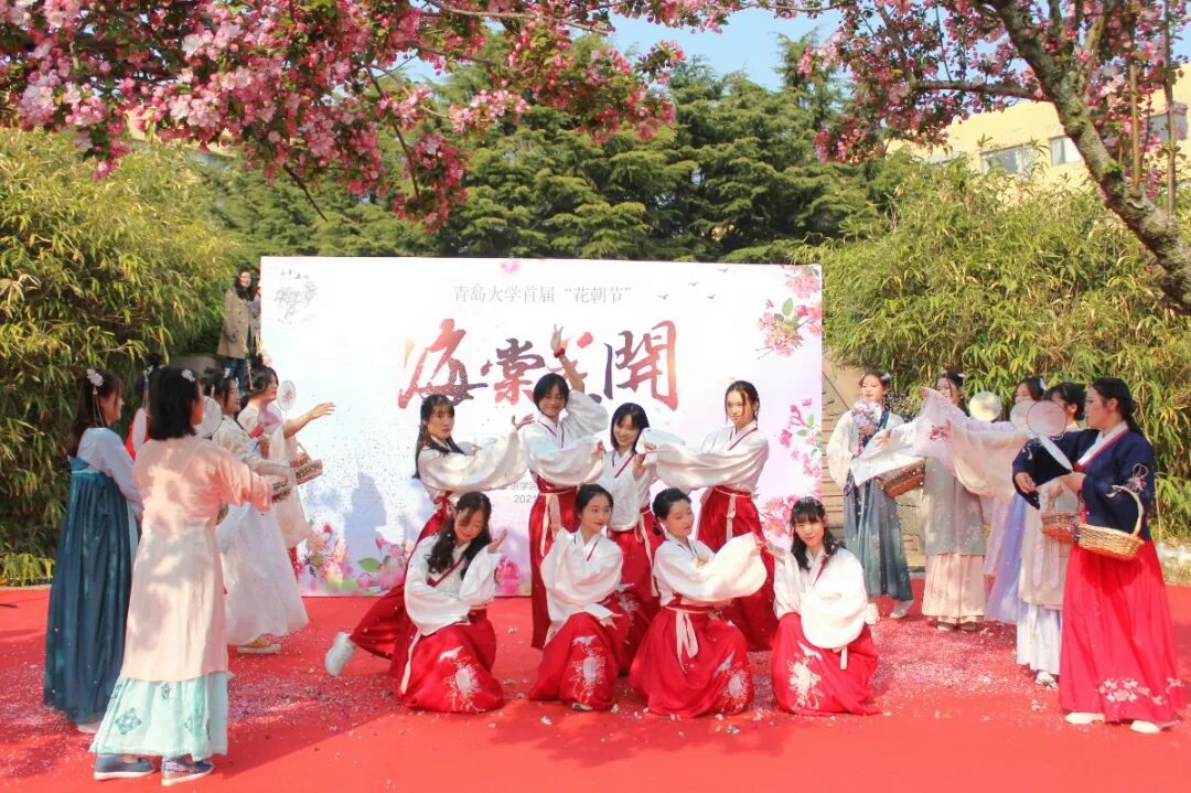花开颂党,百年如朝以花献礼,以花育人。为献礼中国共产党成立100周年,传承与弘扬中华优秀传统文化,强化学校育人作用,加强立德树人工作,“海棠花开”青岛大学首届花朝节于4月9日下午在浮山校区海棠路举行。