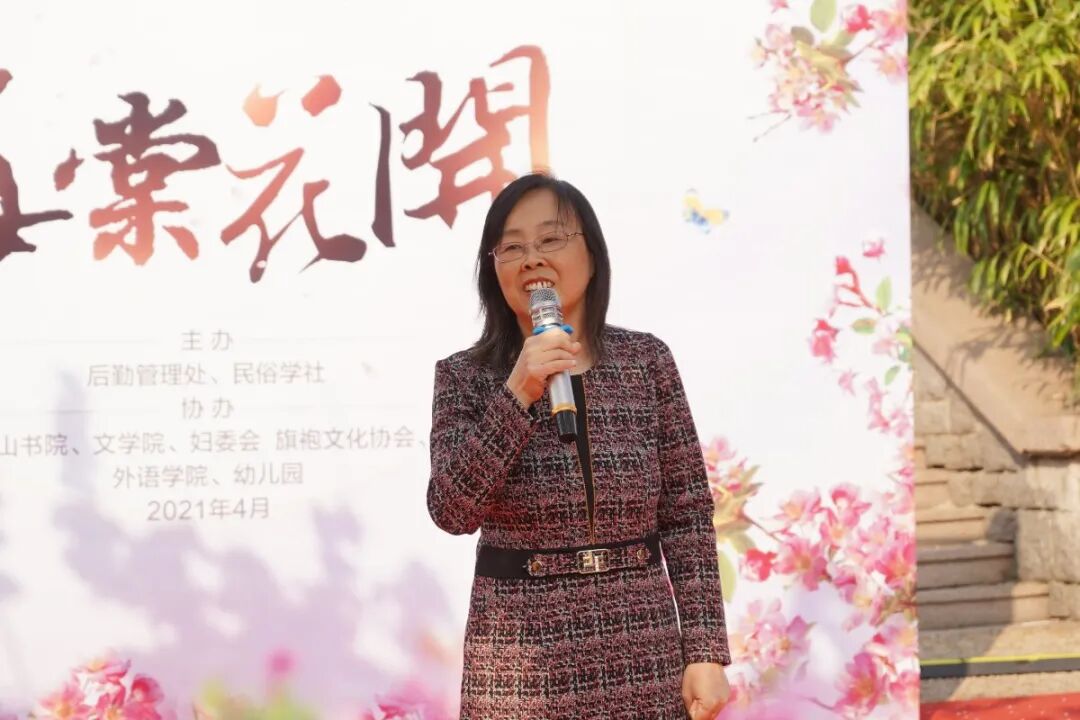 随后四位主持人开场,民俗学专家马光亭老师,为大家讲解有关花朝节和百花的民俗知识。使同学们了解百花文化内涵,学习文化知识,后勤党委书记王静宣布活动开始。