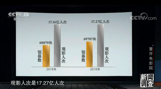据统计,2018年,全国的银幕数是60079块,观影人次是17.16亿人次;2019年,银幕数是69787块,观影人次是17.27亿人次。在支菲娜看来,这其中能说明一些问题。