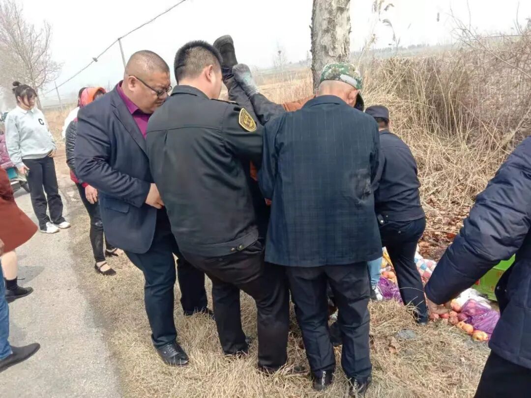 看到三轮车轮子还在转,李文清上前寻找电锁,结果发现还有一人头部全部浸落在水中,看情况危急,立刻呼叫大家再来救助。这时,莱西市公安局马连庄派出所两名辅警邹文豪、王革升恰巧路过,看到情况后,停好车立即上前参与救援,把落水的邹清良从水里抬上路边。