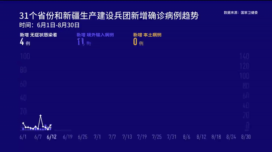 8月30日0—24时,31个省(自治区、直辖市)和新疆生产建设兵团报告新增确诊病例17例,均为境外输入病例(上海6例,天津5例,福建2例,山西1例,浙江1例,广东1例,陕西1例);无新增死亡病例;无新增疑似病例。
