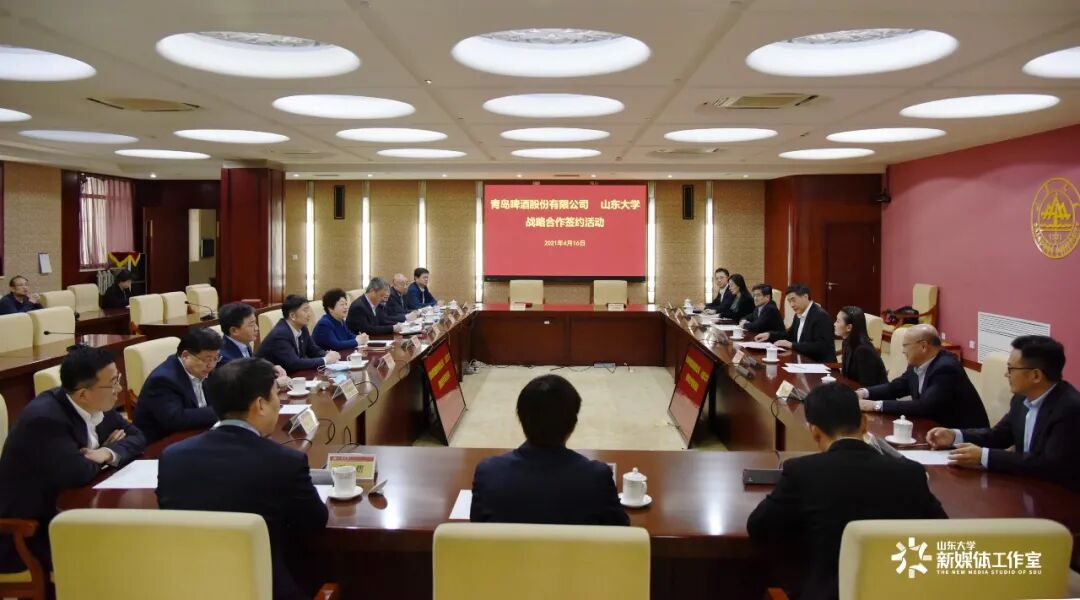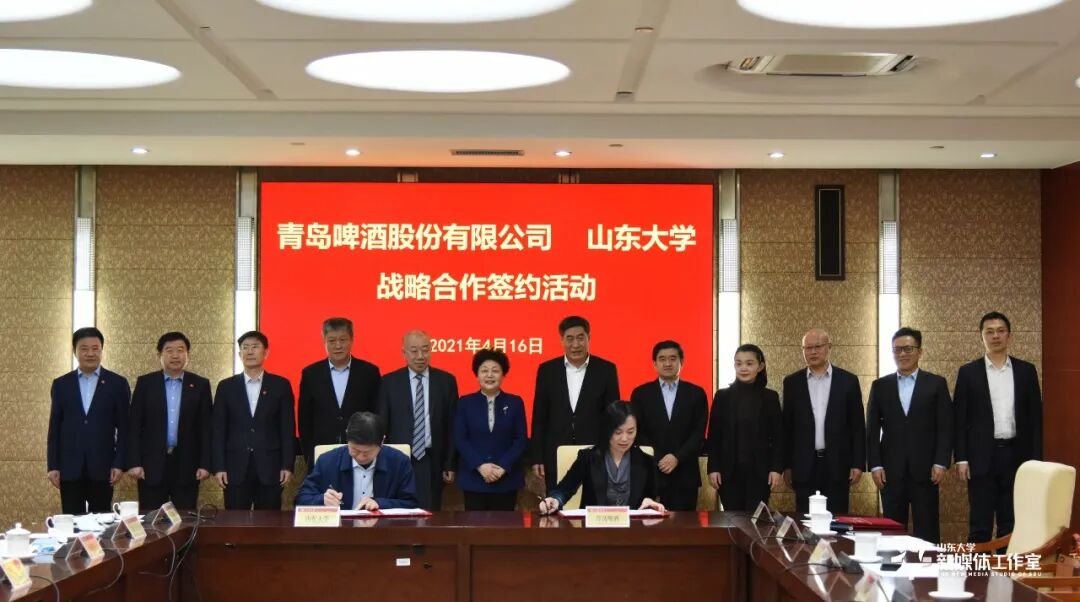 4月16日下午,山东大学与青岛啤酒股份有限公司战略合作协议签约仪式在山东大学中心校区举行。青岛啤酒股份有限公司党委书记、董事长黄克兴,党委委员、工会主席孙静,制造副总裁、啤酒生物发酵工程国重主任董建军;山东大学校长樊丽明,常务副校长王琪珑,副校长兼青岛校区校长韩圣浩,党委常委、宣传部部长桑晓旻,校长助理、党办校办主任朱德建出席仪式。王琪珑主持仪式。