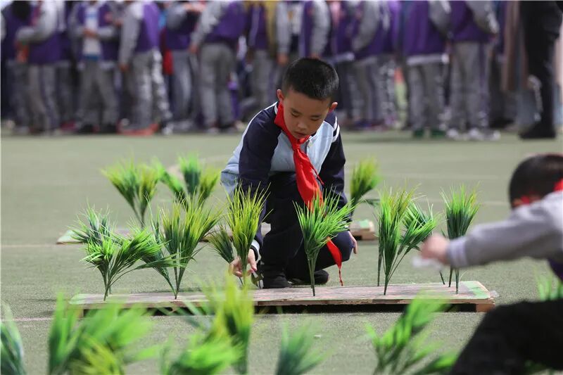 春天是播种的季节,柔和的阳光洒向大地,嫩绿的禾苗等待投入大地的怀抱。“锄禾日当午,汗滴禾下土。谁知盘中餐,粒粒皆辛苦。”在朗朗的诵读声中,青岛虎山路小学低年级的“小豆豆”们兵分五路,用自己的小手体验了田间地头农耕生活的辛苦,锤炼了团结合作、艰苦奋斗的劳动品格。