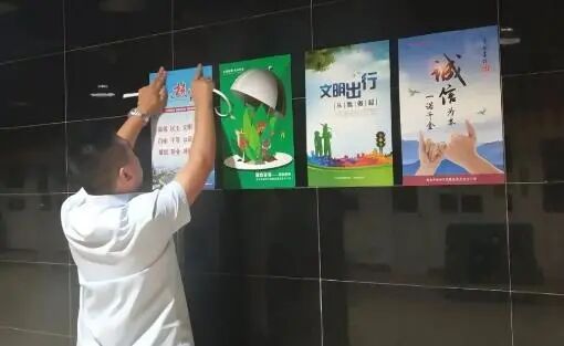 为进一步推进文明城市创建工作,营造良好的创建氛围,促进文明城市创建工作的开展,围绕“中国梦”、“社会主义核心价值观”宣传教育主旋律,制作统一广告,在农贸市场主干道及人员密集地制作宣传展板和张贴宣传海报1000余份,进一步提高城市的文明程度和居民文明素质。