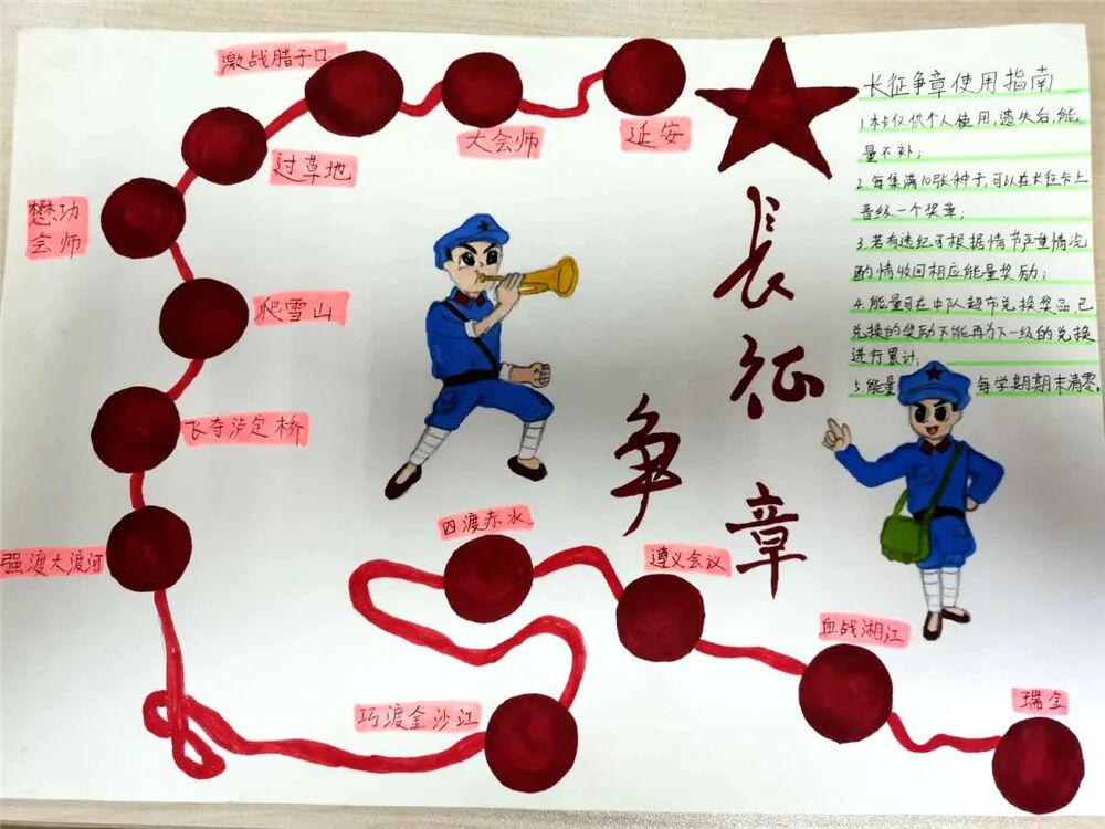 中队队员自主设计的“长征线路图争章奖励”一直在不断完善,随着一次次活动的深入开展,队员修改了我们中队的评价表彰办法。