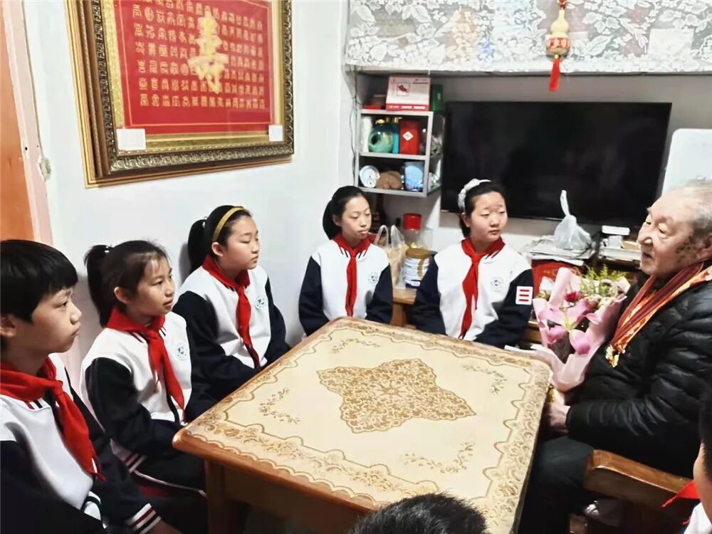 为传承红色革命教育、深化党史爱国教育,在少年儿童“拔节孕穗期”的关键时期,引导队员们铭历史,强信念,树理想。在中国共产党成立100周年之际,为了把党的历史学习好、总结好、传承好、发扬好,引导少先队员向英雄模范、党员先锋学习,传承红色基因,做新时代好队员,青岛王埠小学长征中队的队员们,开展了红领巾寻访身边的英雄活动,8名少先队员代表,探望寻访92岁的抗美援朝老战士高云爷爷。
