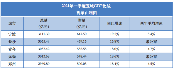 “十四五”开局之年,五城的表现颇引人关注。随着长沙市统计局在五一假期的第二天(5月2日)发布长沙市一季度经济运行数据,五城2021年“一季报”全部出炉。