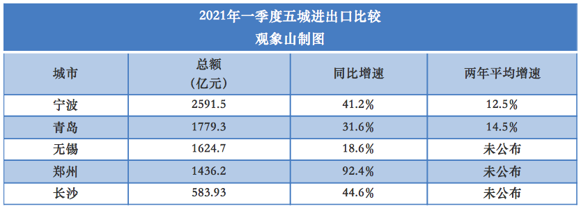 受国际需求有所回暖和中国外贸产业强大供给能力共同作用影响,一季度,我国外贸规模创历史同期新高,呈现稳中加固、稳中向好态势。五城的外贸表现整体好于“大盘”。