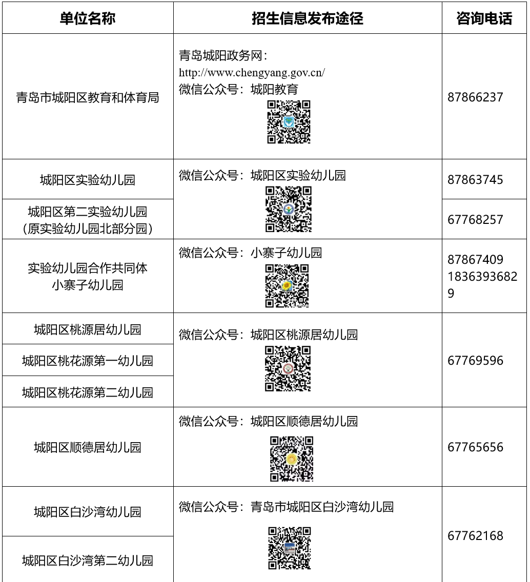 2021年5月14日(星期五),区教育体育局通过城阳区政务网发布《城阳区2021年幼儿园招生工作方案》;局属及街道各幼儿园招生简章通过微信公众号及门口张贴等途径发布。