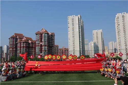 5月21日上午,崂山区育才学校初中部在操场隆重举行春季运动会暨建党一百周年全校体质监测活动。