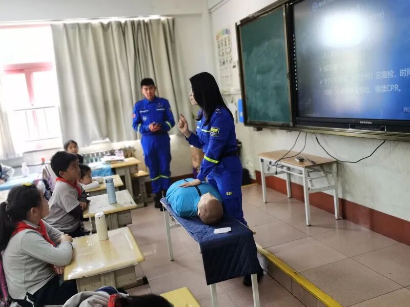 学会了自救知识后,教官们借助模拟假人,演示如何进行紧急救助。同学们都认真地听着教官的讲解,不时模仿学习救助的动作要领。