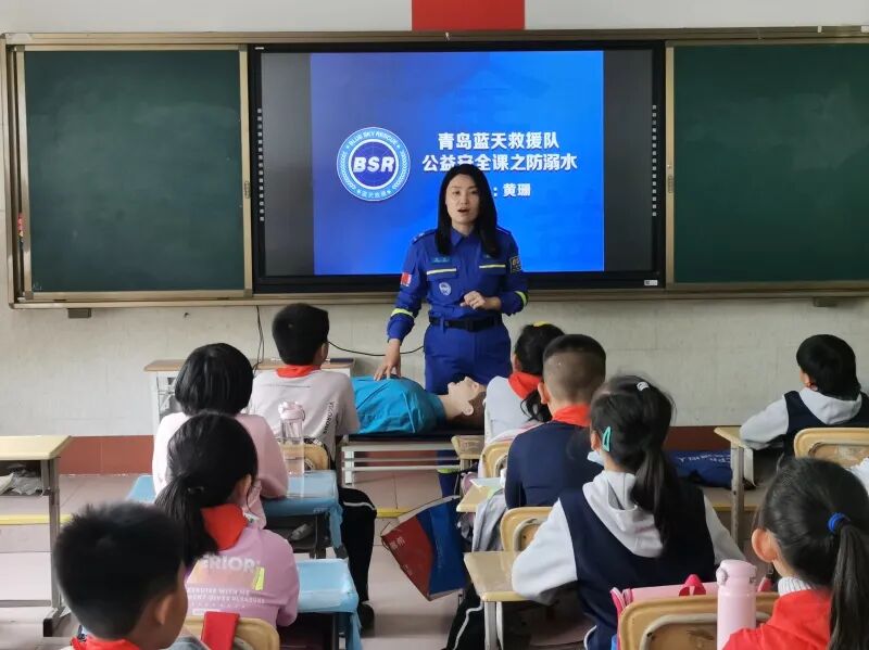青岛日报社/观海新闻5月25日讯 天气越来越热,盛夏就要来了,中小学生亲近自然,接近海边、水塘的机会日益增加,溺水的危险也随之而来;几天前发生在河北献县5名孩子溺亡的不幸事件,再一次敲响了警钟。为了让同学们树立安全意识,远离危险水域,昨天上午,市实验小学二年级一班请到了青岛蓝天救援队的黄珊教官,给同学们上了一堂预防溺水公益安全课。