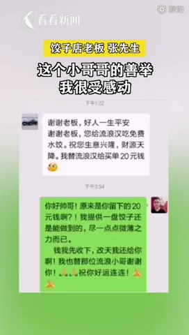 #老板请流浪汉吃水饺顾客偷偷买单#