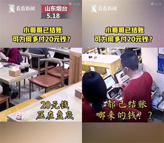 顾客偷偷留钱帮买单