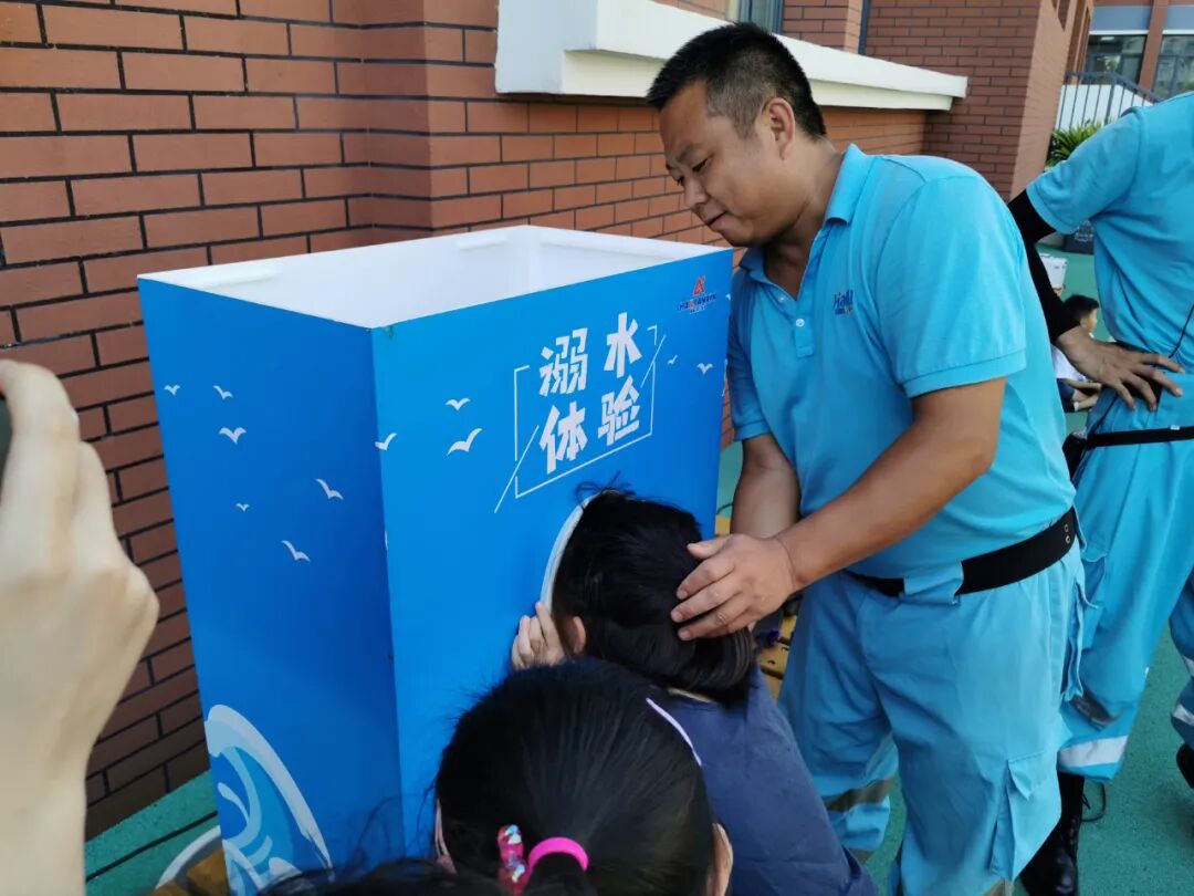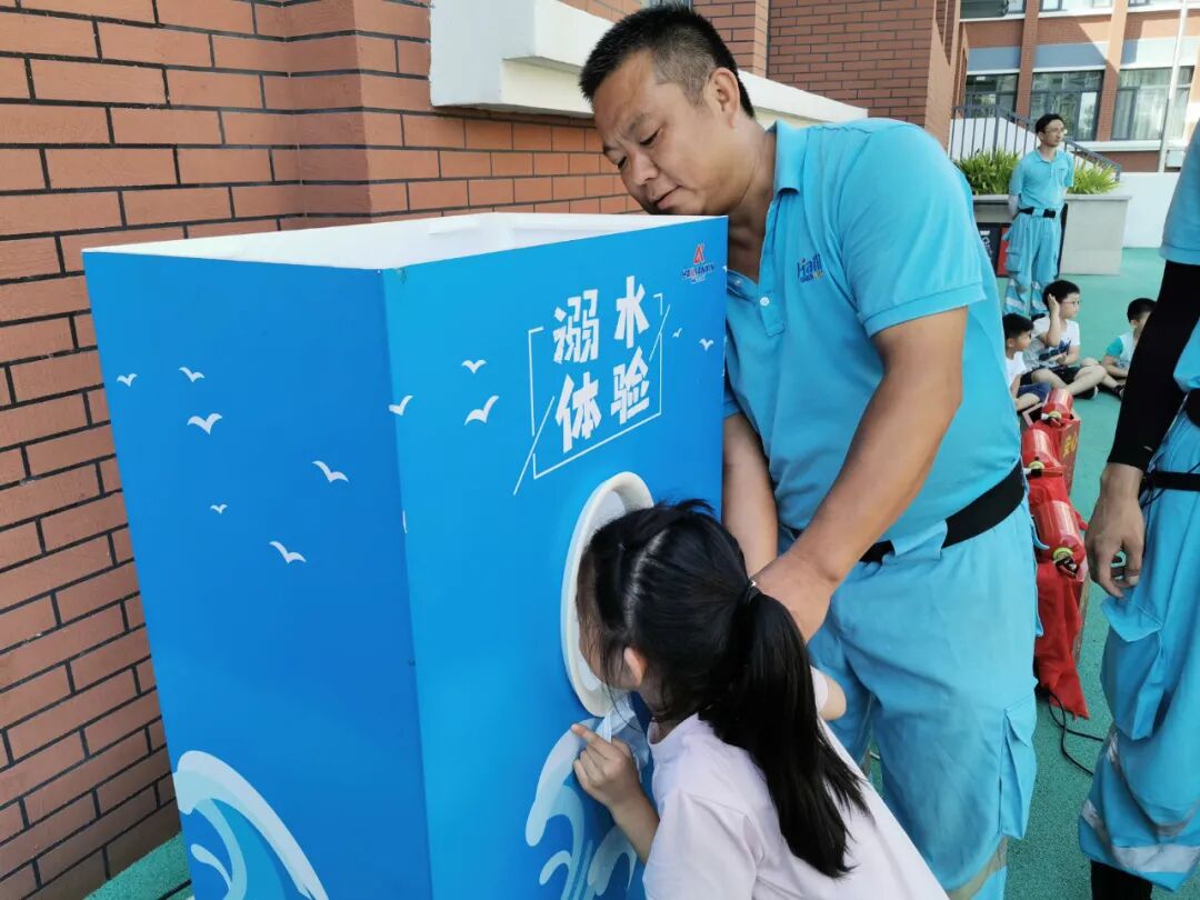 夏季是溺水事件的高发季节。当天,专业的溺水体验机让同学们真实体验了溺水的可怕。体验后,有名同学说:“太难受了,我喘不过气来!”还有的说:“要远离危险水域,爱护生命!” “防溺水”不再是一句口号,而是体验后深刻的感受认识。