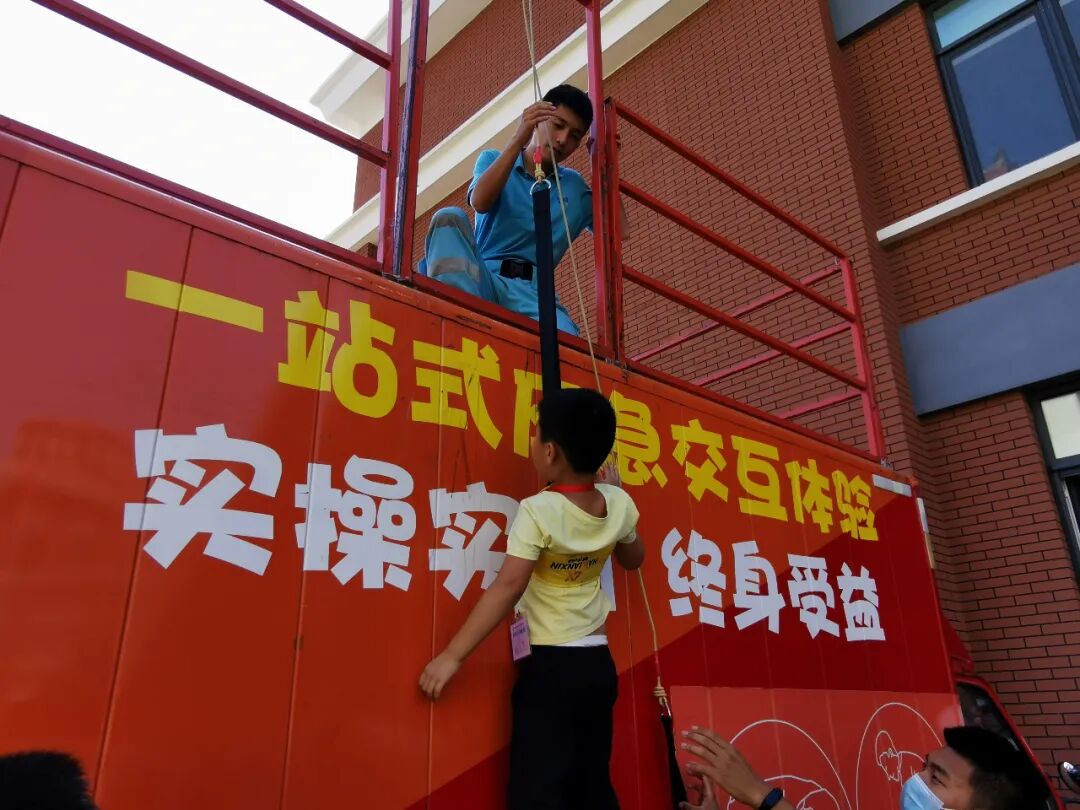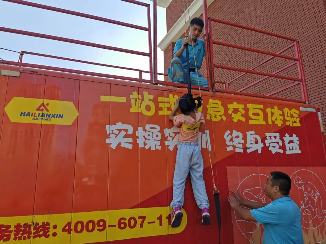 当遇到火灾的时候,如果恰巧处于高楼层,那么高层楼宇逃生器就变成了救命的“神器”,书本上讲得再多,只有亲身体会,才能理解其中的内涵,专业的设备让同学们体验了一把真实的楼宇火灾逃生,懂得了逃生要领与逃生姿势。同学们勇敢挑战楼宇缓降,台下的同学们纷纷为体验者的勇气与沉稳鼓掌喝彩。