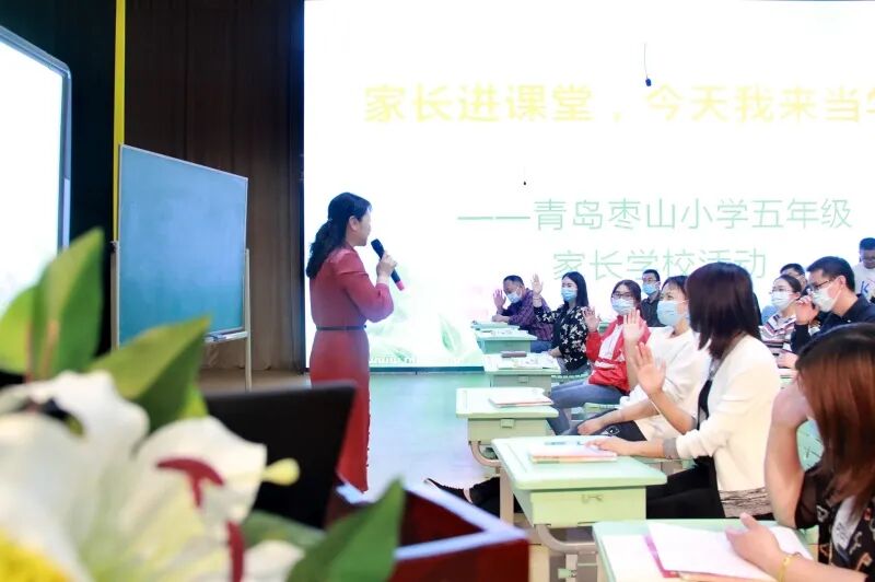 5月28日下午,青岛枣山小学的阳光剧场里正在进行一堂别开生面的语文数学英语课,台上讲课的是枣山小学教师,台下听课的是一群特殊的“学生”——五年级全体家长。学校领导参加了这场新颖的见面会。