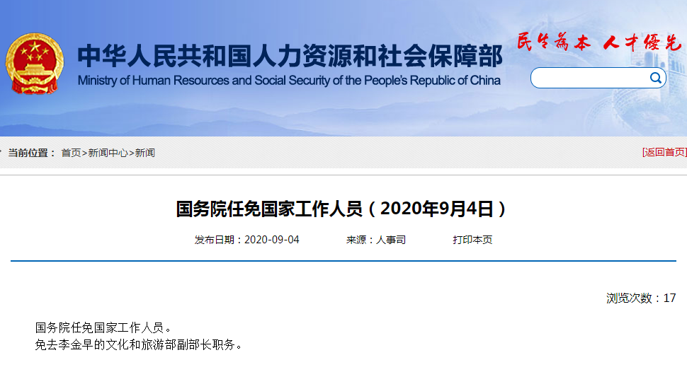 国务院任免国家工作人员:免去李金早文旅部副部长职务 2020-09-04 14:54 人力资源和社会保障局网站 0 国务院任免国家工作人员(2020年9月4日) 国务院任免国家工作人员。 免去李金早的文化和旅游部副部长职务。 责任编辑:孙丽荣