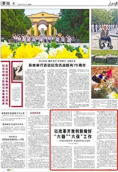 新华社青岛9月3日电(记者张旭东 徐冰)我国首批沿海开放城市、我国重要制造业基地、肩负打造“一带一路”国际合作新平台重要使命……山东省青岛市在落实“六稳”“六保”方面采取了哪些措施,效果如何?山东省委常委、青岛市委书记王清宪做出权威解答。