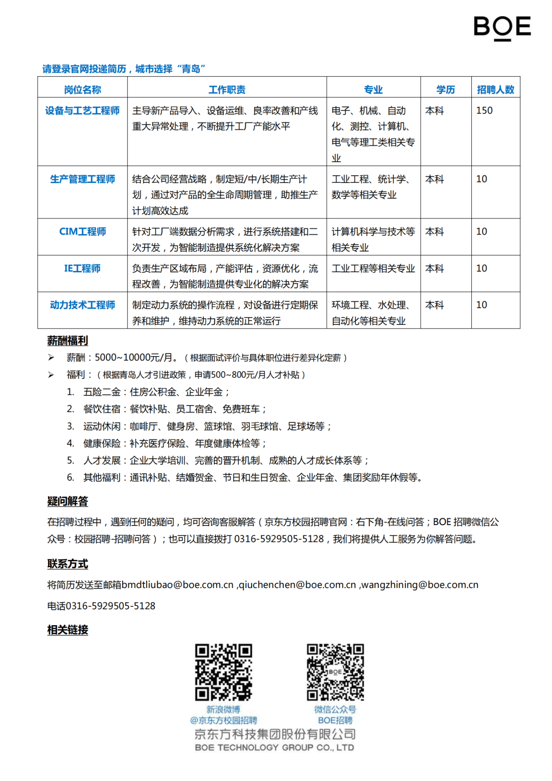 根据公开招聘信息,落地青岛的京东方显示端口器件生产基地将成为全球最大的显示行业模组工厂。