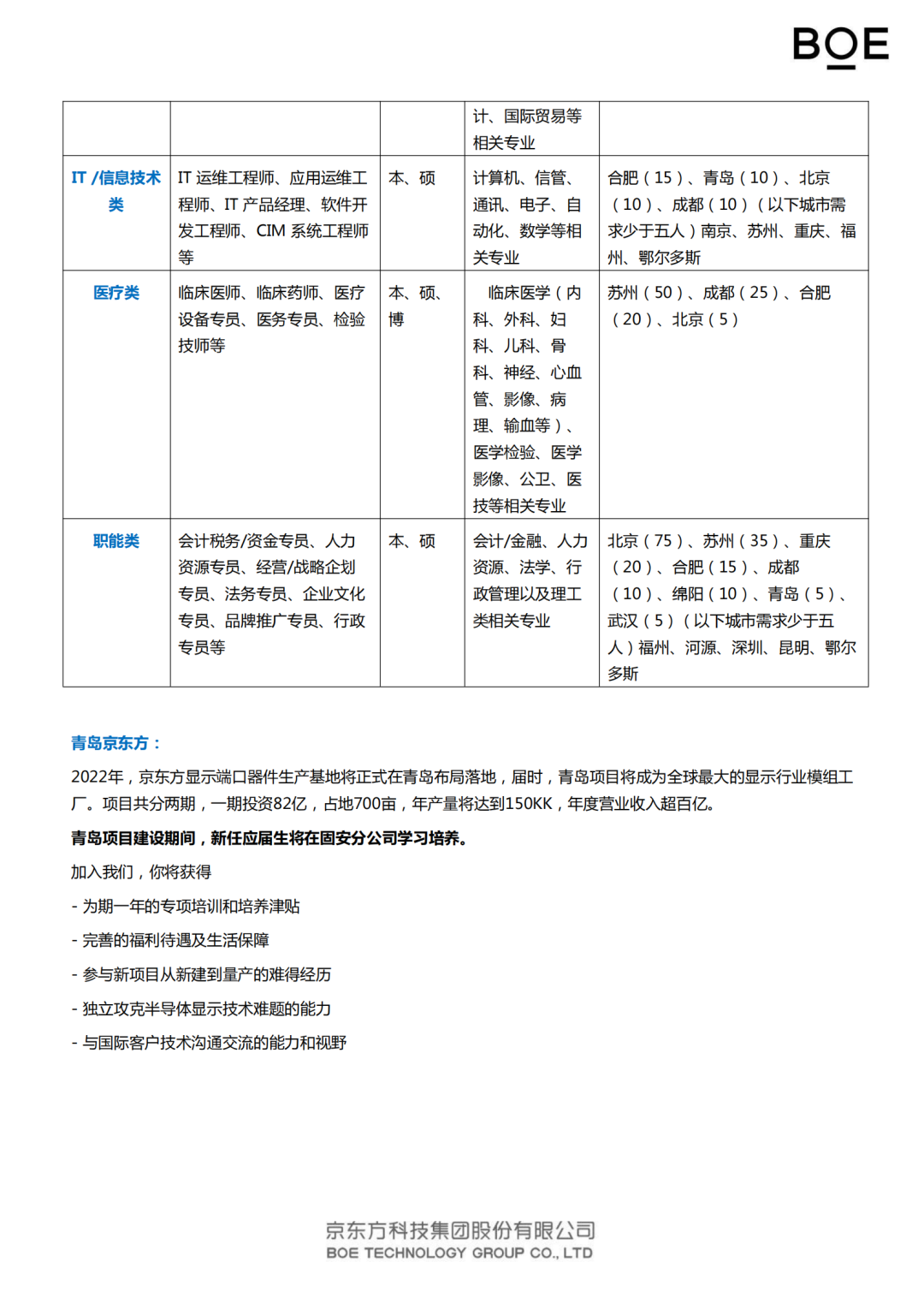 消息是否属实?6月16日,观象君致电京东方科技集团股份有限公司人力资源部,有关工作人员明确表示,京东方将于明年在青岛设立分公司,设立生产基地,因为需要配备大量的专业人才,所以目前已开始通过一些招聘网站先期启动招聘工作。