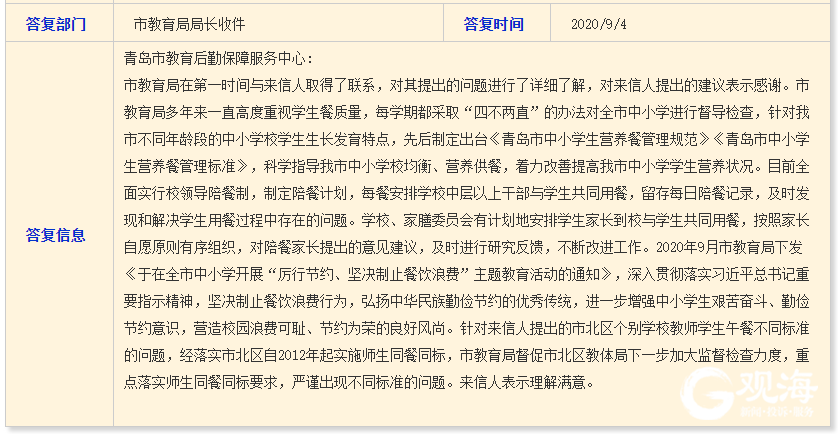 对此,青岛市教育后勤保障服务中心进行了答复。