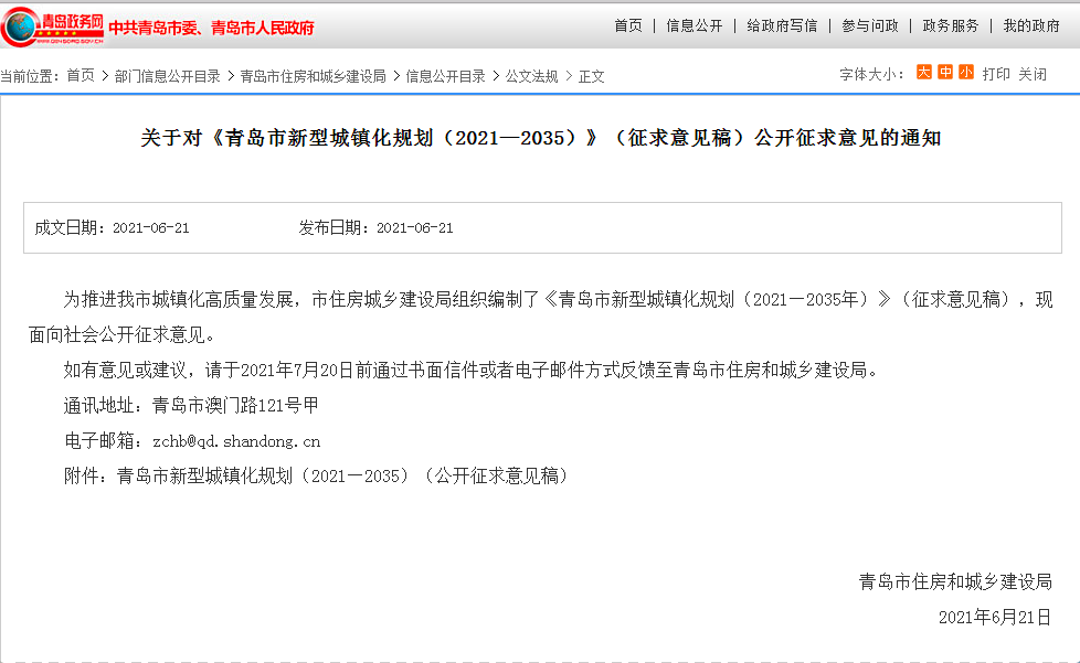 6月21日,《青岛市新型城镇化规划(2021—2035)》(征求意见稿)公开征求意见。这份新版城镇化规划勾勒了青岛城镇化的未来蓝图,提出的目标愿景令人充满期待——