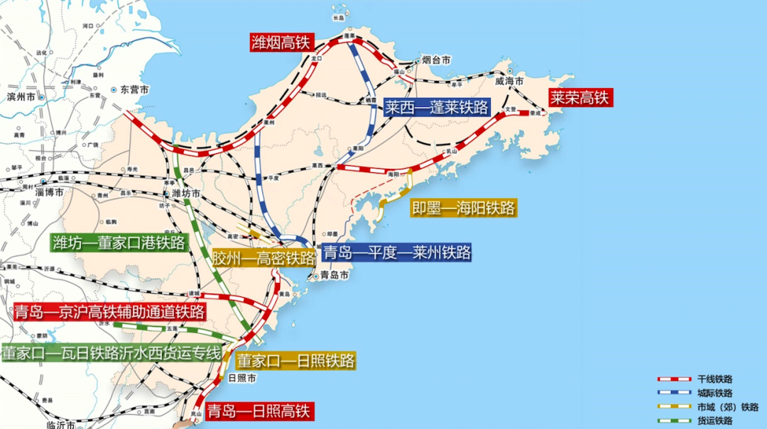 协同建设立体交通体系,畅通青岛中心城区与海阳、日照、高密等周边地区市域(郊)铁路联系;