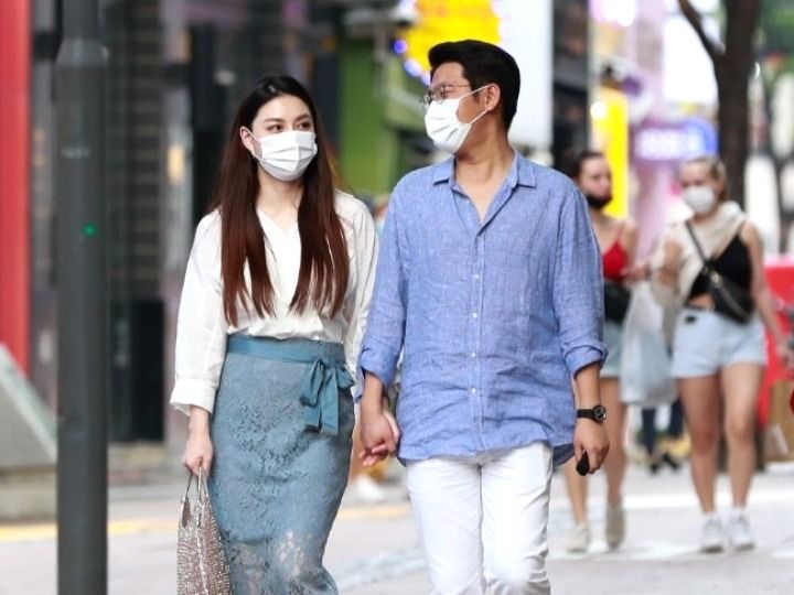 9月5日,人们戴口罩走在韩国首尔明洞的街道上。新华社记者王婧嫱摄