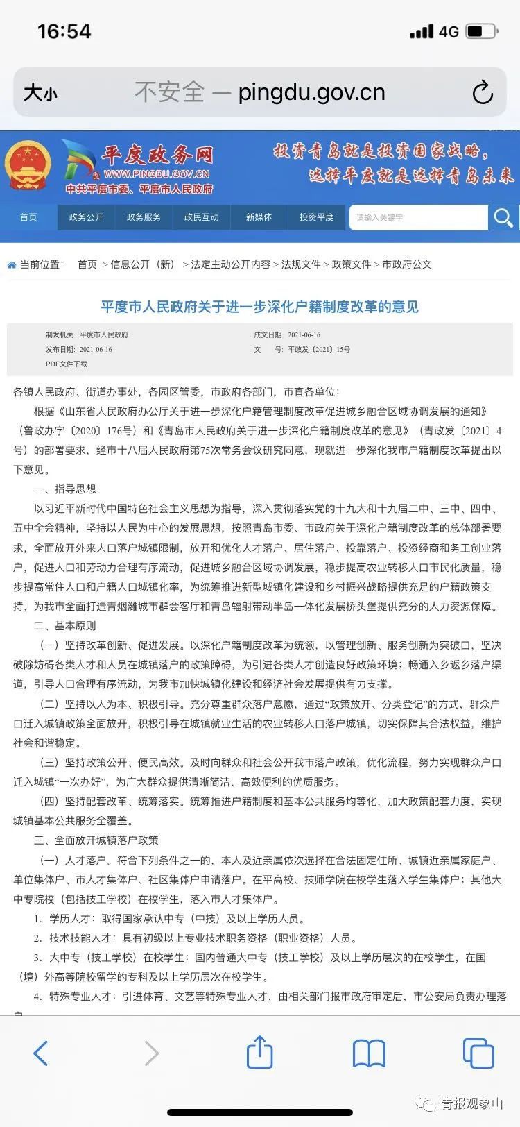 6月16日,平度发布《平度市人民政府关于进一步深化户籍制度改革的意见》;