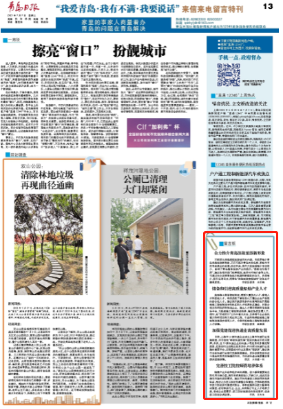 不断深化滨海度假旅游城市的内涵,向世界推介青岛滨海旅游新形象,不仅可提升青岛的知名度,更能为市民带来真正的实惠。但近年来,我市大型旅游推介活动较少,影响了青岛整体旅游产业的提升。“酒香也怕巷子深”,建议各相关部门统筹规划,做好对外推介宣传工作,可通过充分发挥青岛地方纸媒和新媒体的合力,共同推介,吸引全球目光,把青岛“滨海旅游度假城市”这张名片擦得更亮。 市政协委员 马志梅