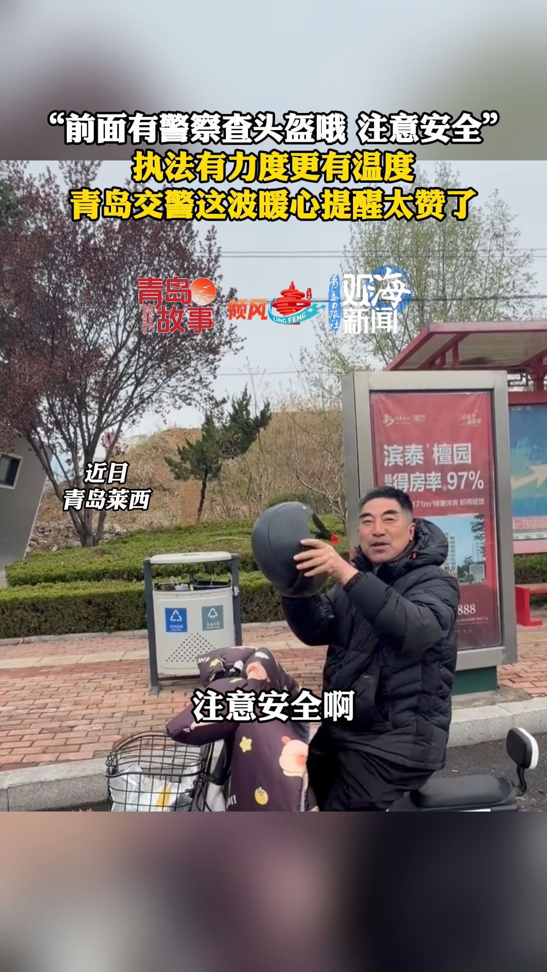 “前面有警察查头盔哦,注意安全!”执法有力度更有温度,青岛交警这波暖心提醒太赞了
