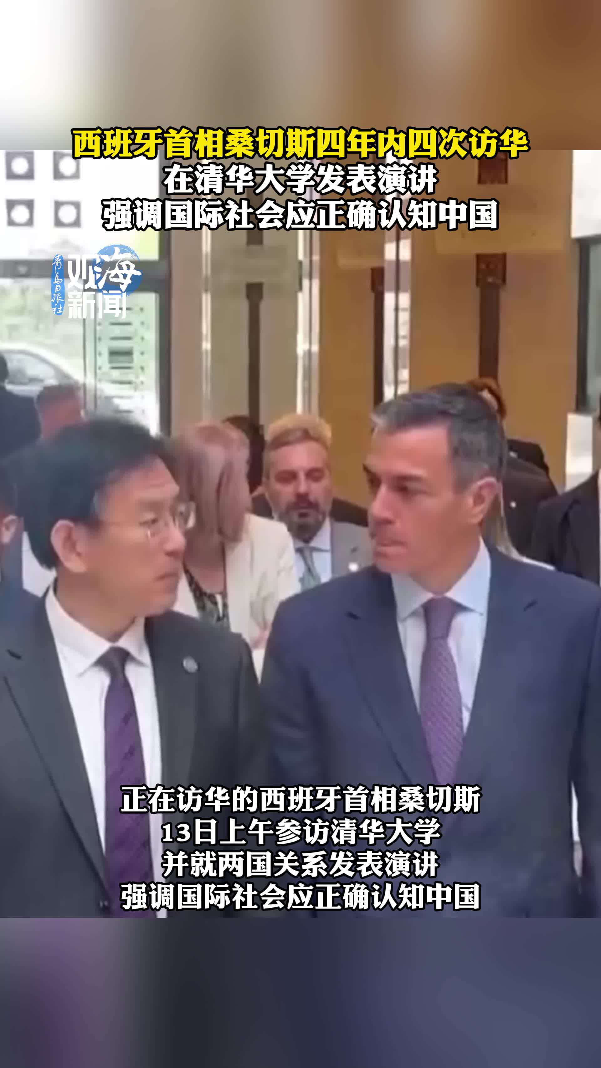 西班牙首相桑切斯四年内四次访华,在清华大学发表演讲,强调国际社会应正确认知中国