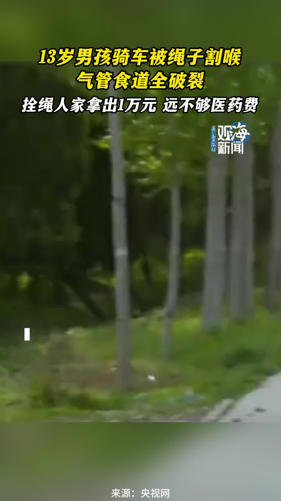13岁男孩骑车被绳子割喉,气管食道全破裂