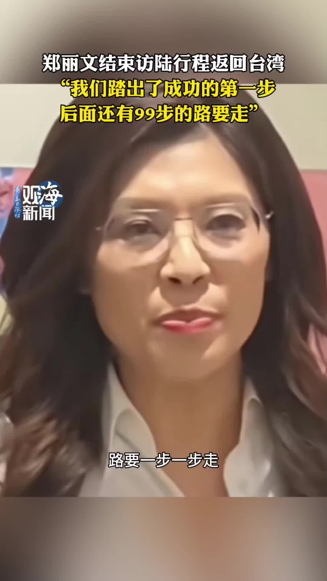 郑丽文结束访陆行程返回台湾 ,“我们踏出了成功的第一步,后面还有99步的路要走。”
