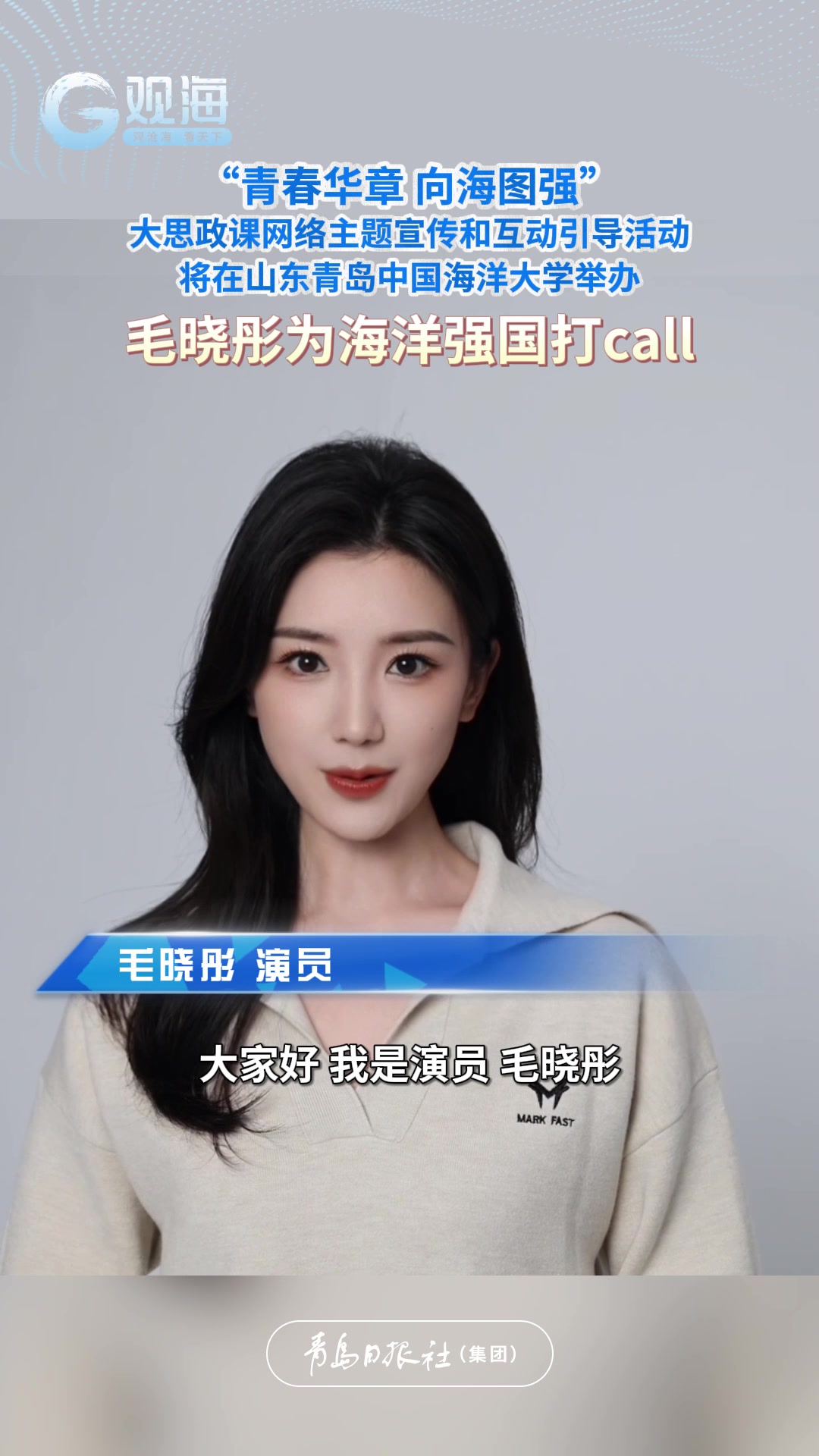 毛晓彤为海洋强国打call!预祝“青春华章 向海图强”大思政课网络主题宣传和互动引导活动圆满成功