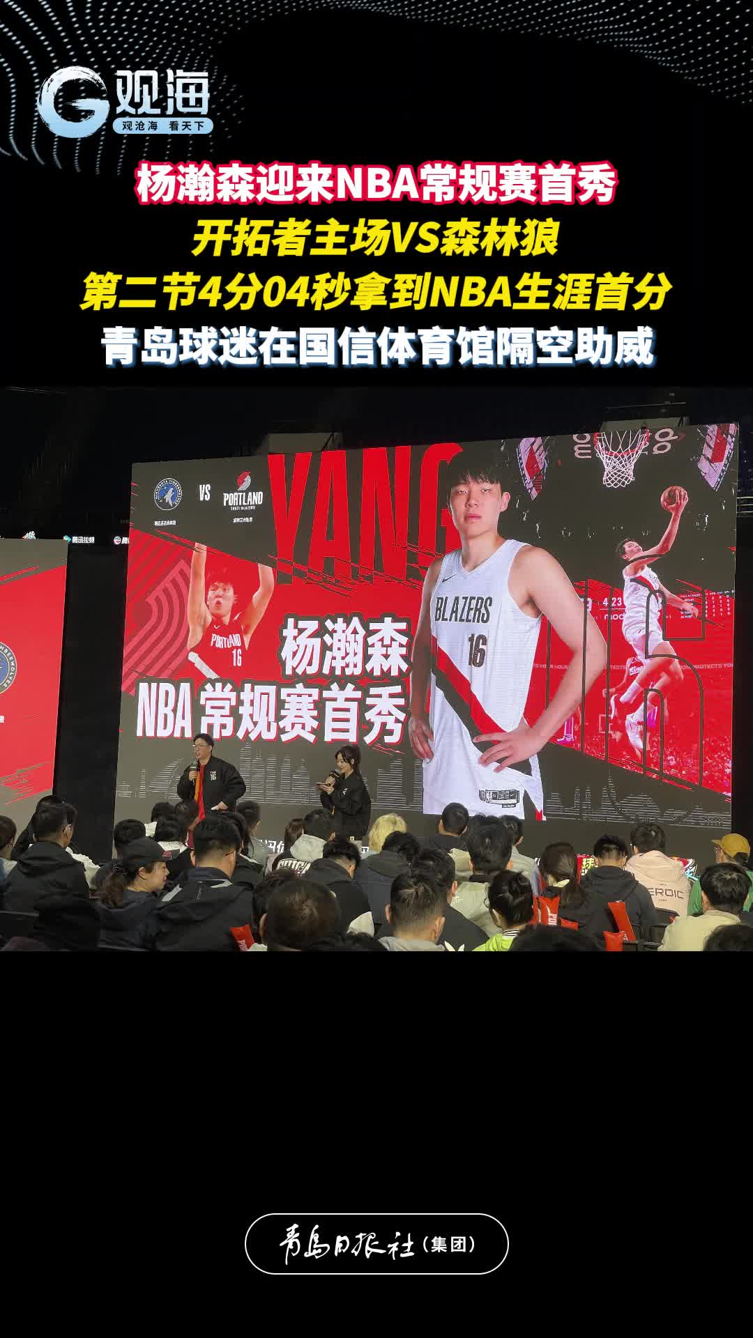 杨瀚森迎来NBA常规赛首秀,第二节4分04秒拿到NBA生涯首分,青岛球迷隔空助威!