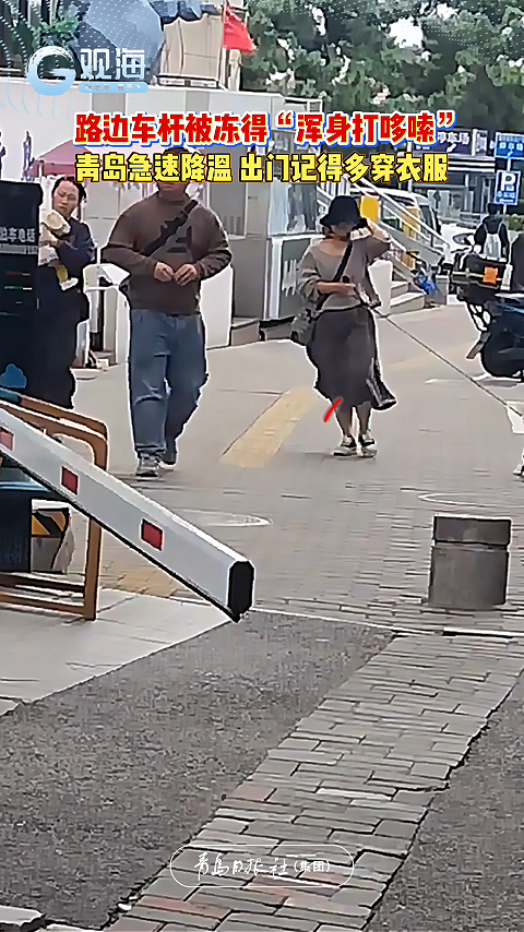 青岛急速降温,路边车杆被冻得“浑身打哆嗦”,出门记得多穿衣服