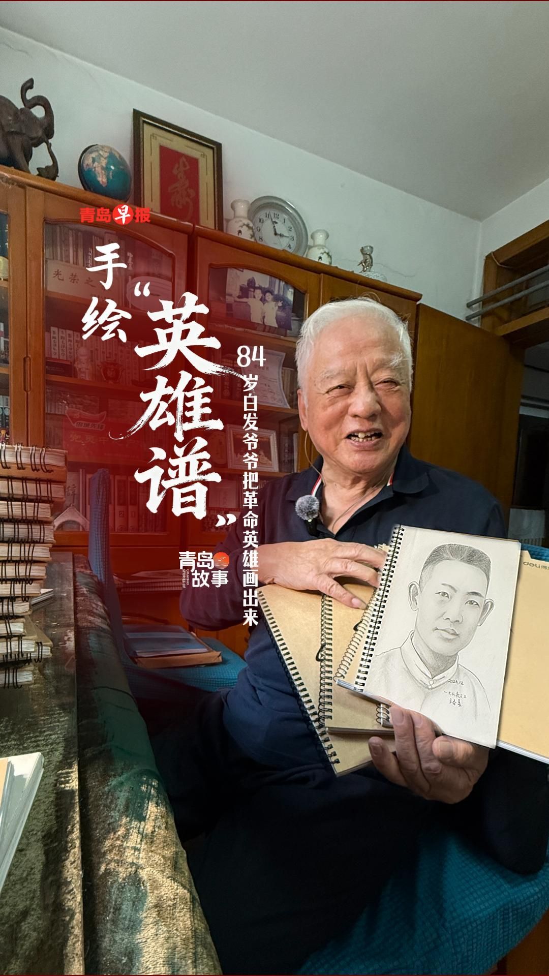 青岛84岁“白发爷爷”邱镇珂手绘“英雄谱”