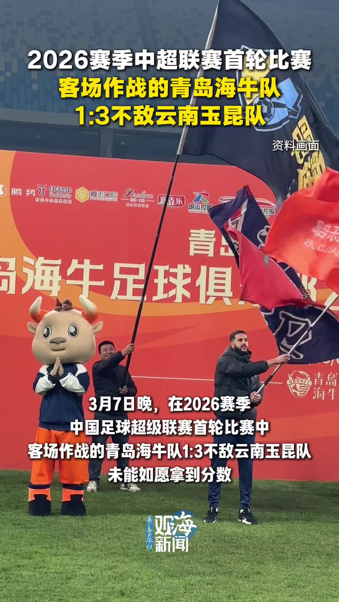 2026赛季中超联赛首轮比赛,客场作战的青岛海牛队1:3不敌云南玉昆队